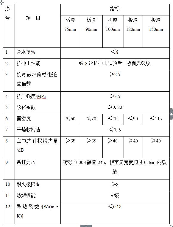 增強(qiáng)型發(fā)泡水泥無機(jī)復(fù)合條板物理學(xué)性能指標(biāo)