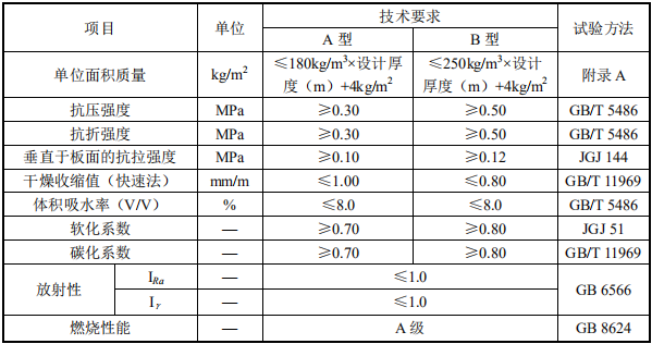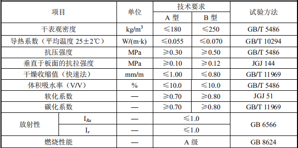制作增強型改性發(fā)泡水泥保溫板所使用的改性發(fā)泡水泥保溫板的性能指標如下: